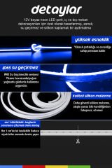 12V Mavi neon LED şerit, iç ve dış mekan dekorasyonları için özel olarak tasarlanmış, esnek, su geçirmez ve silikon kaplamalı bir aydınlatma ürünüdür. 1 cm’de bir kesilebilir özelliği sayesinde ihtiyacınıza göre özelleştirilebilir ve kolayca şekillendirilebilir.